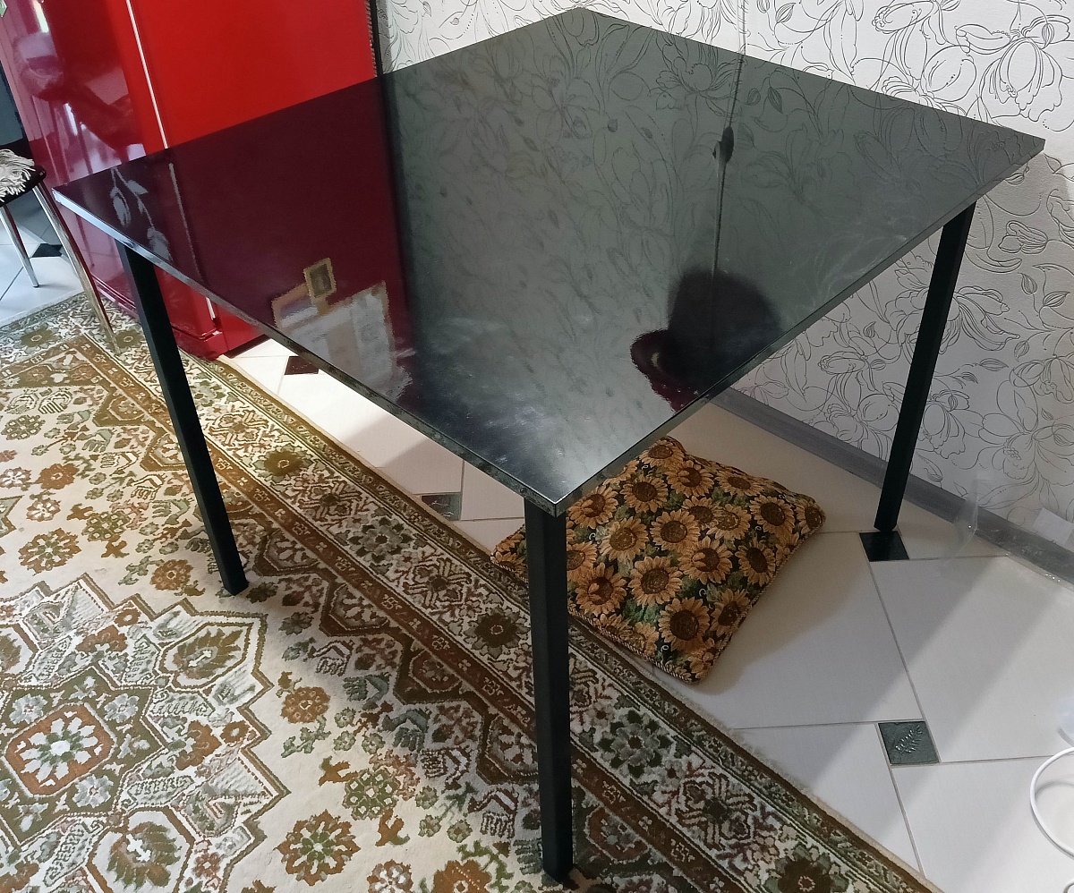 Заказ 00000769508. Отличный стол. Простой и достаточно дешёвый — то что я искал. Мне были нужны строго определённые размеры, поэтому стандартные мебельные магазины меня автоматически не устраивали. Здесь на сайте удалось подобрать нужный размер. Столешница МДФ чёрный глянец — оказалась тоньше, чем я думал, но в эксплуатации толщина достаточная для комфорта. К качеству претензий нет. Не хватило отметок на столешнице, куда вкручивать саморезы, пришлось самому выравнивать, хотя с другой стороны может быть так и задумано, чтобы можно было разместить её как удобно. Ещё были определённые проблемы с доставкой, т.к. курьер был в моём городе только проездом из Москвы в Белоруссию, пришлось пойти ему на встречу и подстроиться под него. Зато всё целое приехало.