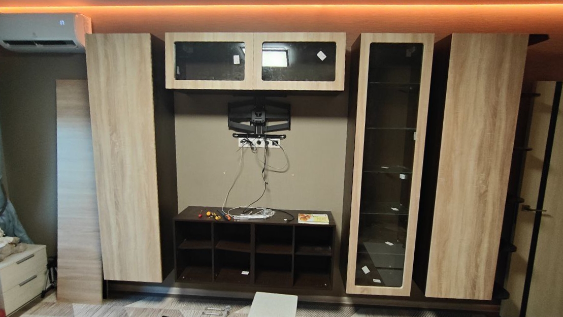 При переезде пришлось оставить свой шкаф-кабинет покупателям, но он был очень функциональным, поэтому захотелось его повторить. Он был сборным: Икеа+доп.секции на заказ у другого производителя. По известным причинам элементы Икеа заказать не удалось, а старый производитель не смог выполнить заказ полностью. Поэтому пришлось искать нового. Заказ был очень сложный и нестандартный, на него откликнулось всего 2 компании из примерно 6-7. Бестмебель были вторые, но они не только сразу прислали мне готовый чертеж в течение недели (не задавая 100500 вопросов, как остальные), но и устроили по цене. В первой фирме озвучили цену РОВНО в 2 раза дороже (и при этом они даже не прислали чертеж).Не буду скрывать, переписка была долгая, порядка пары недель (но это из-за сложности заказа+я иногда тормозила и забывала о каких-то деталях и снова писала уточнения), однако на каждое письмо мне постоянно присылали обновленные эскизы.После внесения 10% предоплаты заказ запустили в работу (Шкаф угловой №000081783 (4100х2364х600)).Эту огромную штуковину сделали за неделю! Мы дольше переписывались и уточняли.Привезли тоже очень быстро. Качество идеальное. А самое главное, что задние стенки, которые у всех (и у Икеа в т.ч.) были картонные, здесь оказались деревянными! (Ну, или из дсп. В общем, не фанерка, а полноценная толстая стенка, как боковая). Вся фурнитура посчитана, все отлично запаковано. Претензий практически нет. Но те, что были, нужно озвучить:- при комплектации забыли положить выкатные корзины, но этот недостаток при первом же звонки учли, и в течение недели оперативно довезли. На нас это никак не сказалось, т.к. мы еще не начинали собирать шкаф;- очень маленький эскиз для сборки. Подробной инструкции нет. В целом, было примерно понятно (особенно потому что мы помнили, как собирался предыдущий шкаф, пусть и от другого производителя), но все же некоторые детали заставляли задуматься;- и самая большая боль - это те самые выкатные корзины, которые почему-то крепили снизу, а не сверху. И это прямо косяк проектировщиков - ужасно неудобная сборка (подозреваю, что при значительно большей себестоимости всех запчастей для этого механизма, чем если бы крепеж был сверху) и постоянное вынужденное подкручивание гаек (которые могут отвинтиться через 10-50 выдвиганий-задвиганий корзин).Но все же снижать звезду за это не буду, т.к. качество материалов (даже этих дурацких крепежей), идеальный подгон отверстий, вся работа - от приема заказа до водителей и сервисной службы, бонусная программа, по которой я сделала второй заказ для другого шкафа со скидкой 50% (Угловой элемент №000091624 (300х2220х600), у него все было безупречно!), - все это на высоте.Если учтете пожелания об инструкции и корзинах, вам прямо равных не будет и по сервису, и по исполнению.Фото прилагаю.
