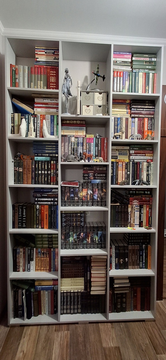 Заказ 00000201823, изделие Стеллаж Эльбрус-3 BMS (1268х2350х220).Нужен был вместительный и не занимающий много места стеллаж. Стеллаж Эльбрус именно такой и оказался. Поместилось много книг, и места в коридоре он занял минимум.Вписался по цвету идеально.Изготовлен был по моим размерам, сроки поставки были согласованы. Привезли полный комплект без брака. Покупкой остались довольны.