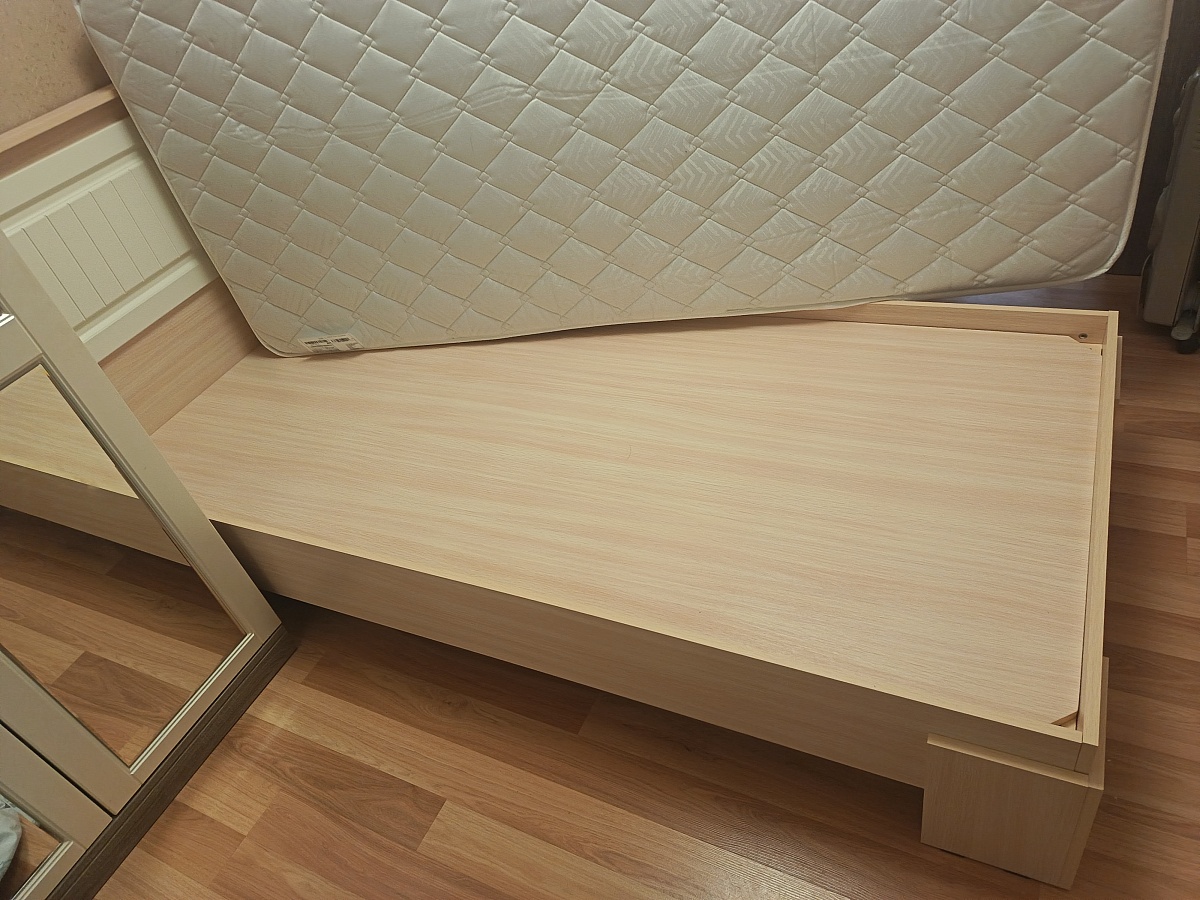Кравать доставили в оговорённые сроки. Кровать красивая, светлая. Комплектующие все на месте.Заказ 00000296793