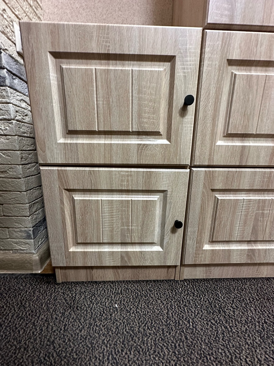 Интересная модель благодаря центральной вставке и округлым формам боковых дверей, хорошо смотрится в комплекте с другой корпусной мебелью. Также тумба очень вместительна.