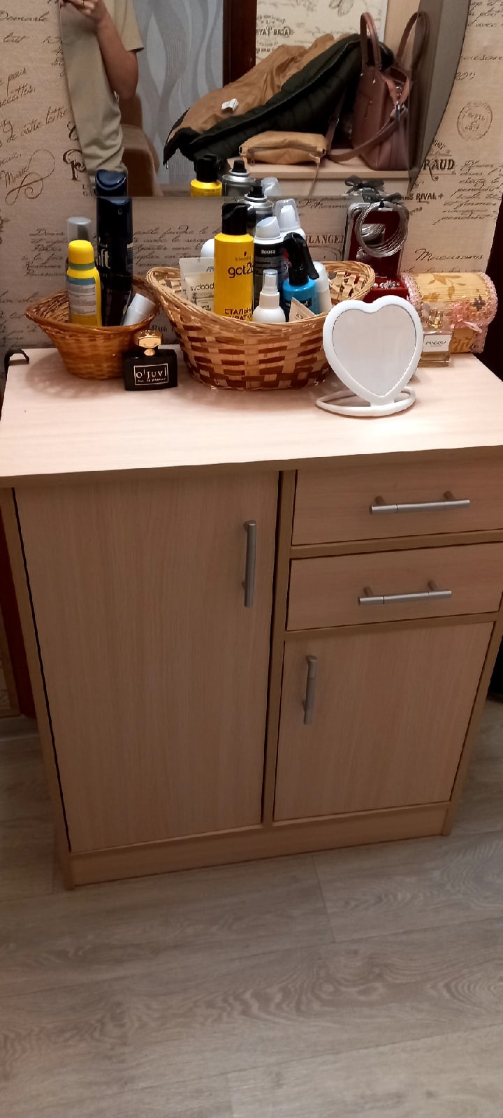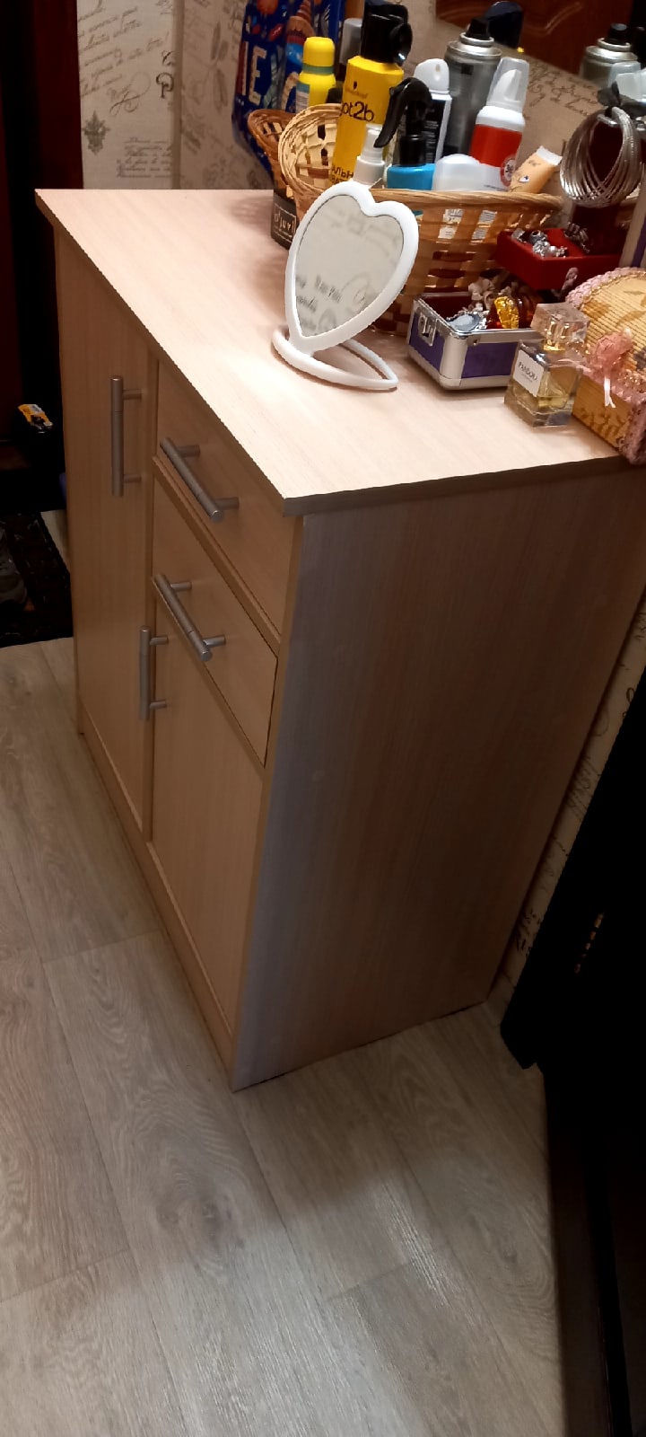 Отличный и практичный подкатной столик. Применение ему можно найти разное, в моем случае используется как туалетный стол, удобство в том, что поставить можно как угодно по настроению Все отлично!) Доставка быстрая, изготовление изделия моментальное, но видимо из-за лёгкости сборки , без сложных элементов, собрали за 25 минут.