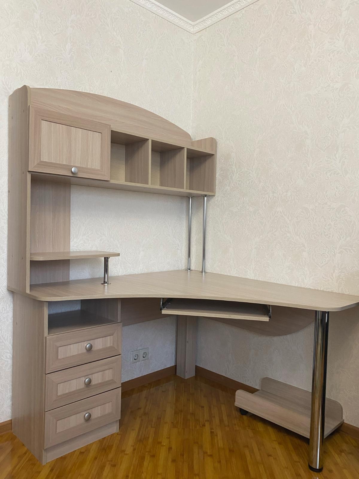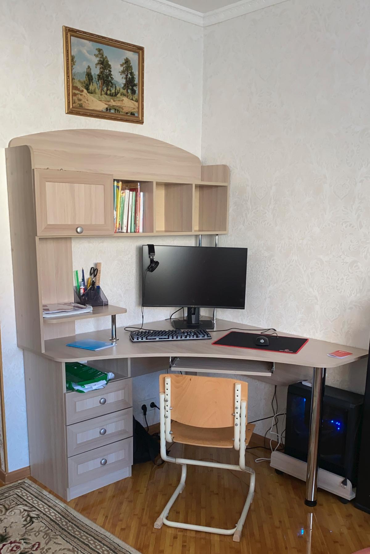 Заказ 00000597929, изделие ЭСКИЗ Компьютерный стол Млайн 11 BMS (1300х1850х1300)Стол органично вписался в отведенное ему пространство. Как и положено компьютерному столу , то есть место для процессора и монитора, есть полочки, три ящика.  Очень удобная конструкция.  Покупали сыну, он в восторге. Доставили в срок. Всем советую, не пожалеете!!!