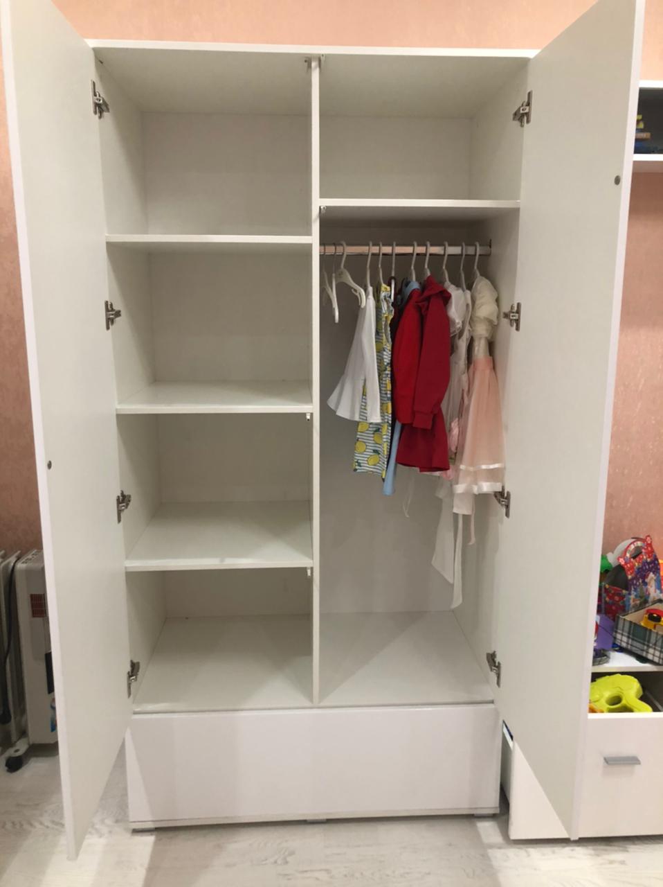 По дизайну и внешнему виду он оказался, то что мы искали. Идеально вписался в наш интерьер и к гарнитуру, даже ножки оказались одинаковые. Изготовили его реально за супер короткий срок и даже на день раньше привезли.Есть нюансы по доставке, дома обнаружили на фасаде двери с внутренний стороны скол в углу, где петля, установили, надеюсь внимание не будем обращать.Огромный минус, что компания не предоставляет инструкцию по сборке изделия, а только схему со спецификацией. Что за чем следует при сборке нужно догадываться самим! Из-за этого время сборки затянулось и пару раз приходилось переделывать! В отделе гарантий ответили, что у них такое не предусмотрено и вообще это индивидуальный заказ, но мы же выбирали по вашим шаблоном, как она может быть индивидуальным?! Рекомендуем Вам хотя бы разработать основную инструкцию к изделием и к ней при необходимости дополнительные схемы по сборке, с учетом  выбранных заказчиком дополнений.Так же огромный минус, что весь крепеж был сложен в один пакет! Почему нельзя нормально разложить по маленьким пакетикам? Приходилось шурупы раскладывать с разницей в длине по 1.5 мм в разные кучки, времени на это тоже ушло прилично.В целом за шкаф смелая 4.