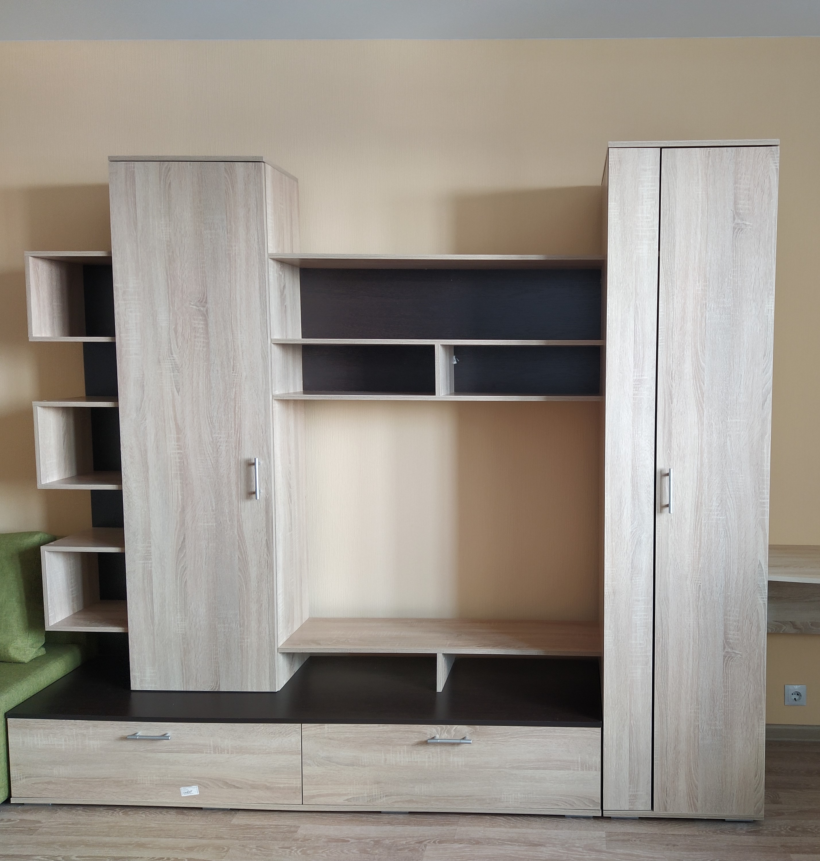Удобная, компактная, но вместительная прихожая. Есть все, что нужно: закрытый шкаф для верхней одежды, которая пока не нужна, крючки для одежды, которую носишь постоянно, ящик для обуви, выдвижные ящики для всяких мелочей, зеркало... Удобно, что при заказе можно менять размеры. Прихожая вписалась в простенок идеально. Доставка была точно в срок, собирали самостоятельно, никаких проблем не возникло. Всем довольны.