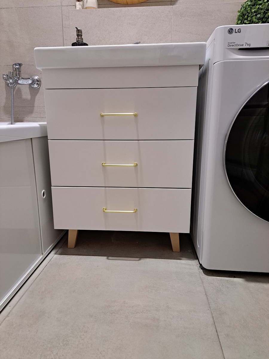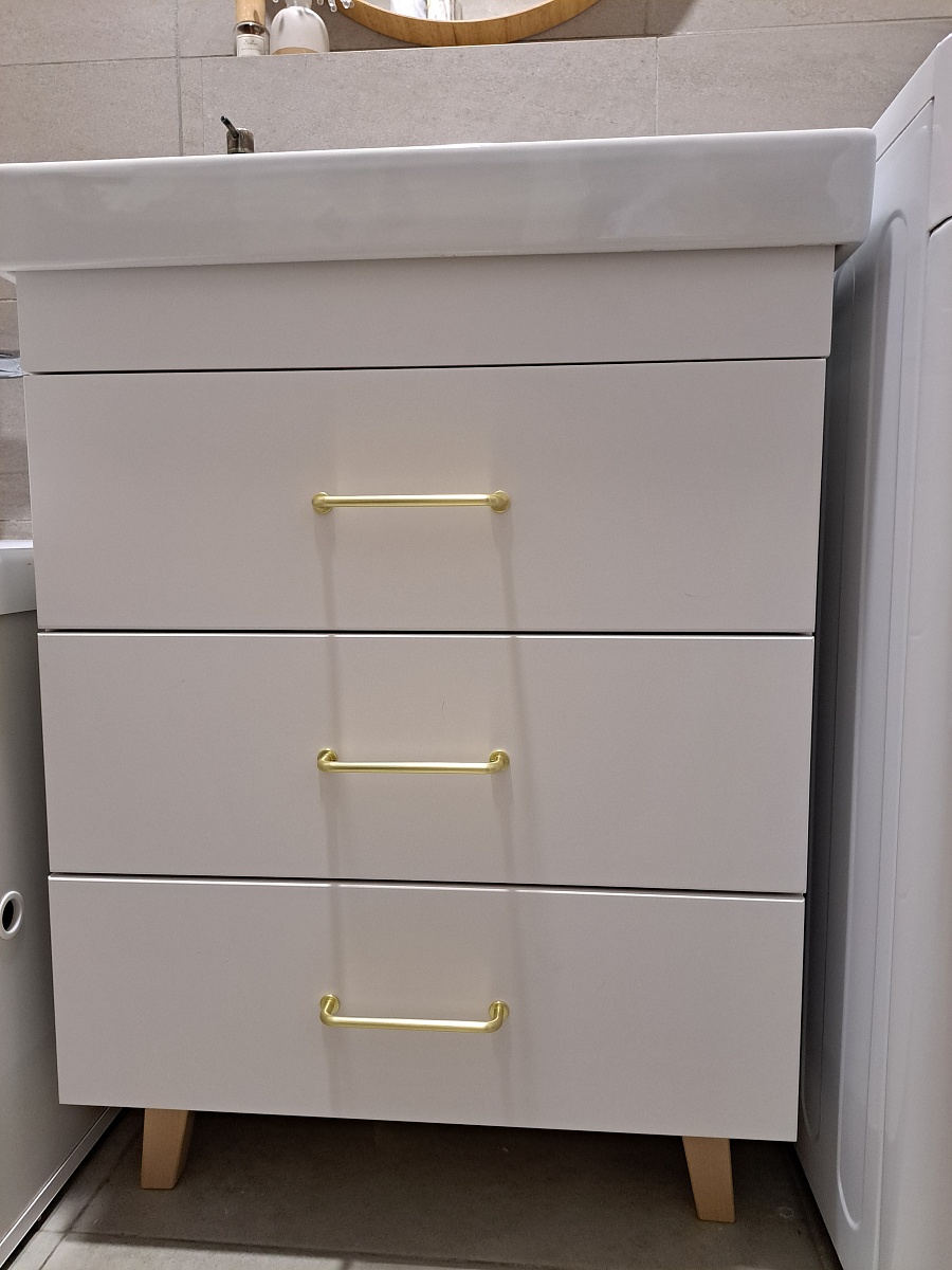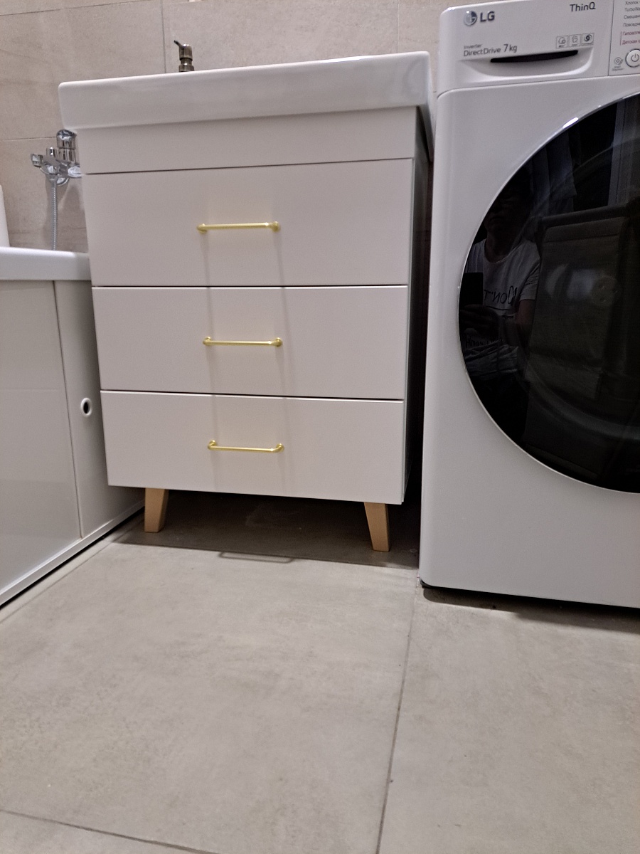 Заказала по своим размерам.Собрала сама,не пригодились полки -ребра жёсткости.Шкаф получился небольшой ,поэтому не было необходимости их крепить.Ножки заказала деревянные,вместо металлических. И....разметка оказалась неправильной .В одно отверстие деревянный дюбель,соединяющий шкаф и ножку попал,а второе отверстие если использовать для скрепления,то ножки смотрели бы не в сторону а внутрь. Пришлось установить как хотелось,ножки наружу...