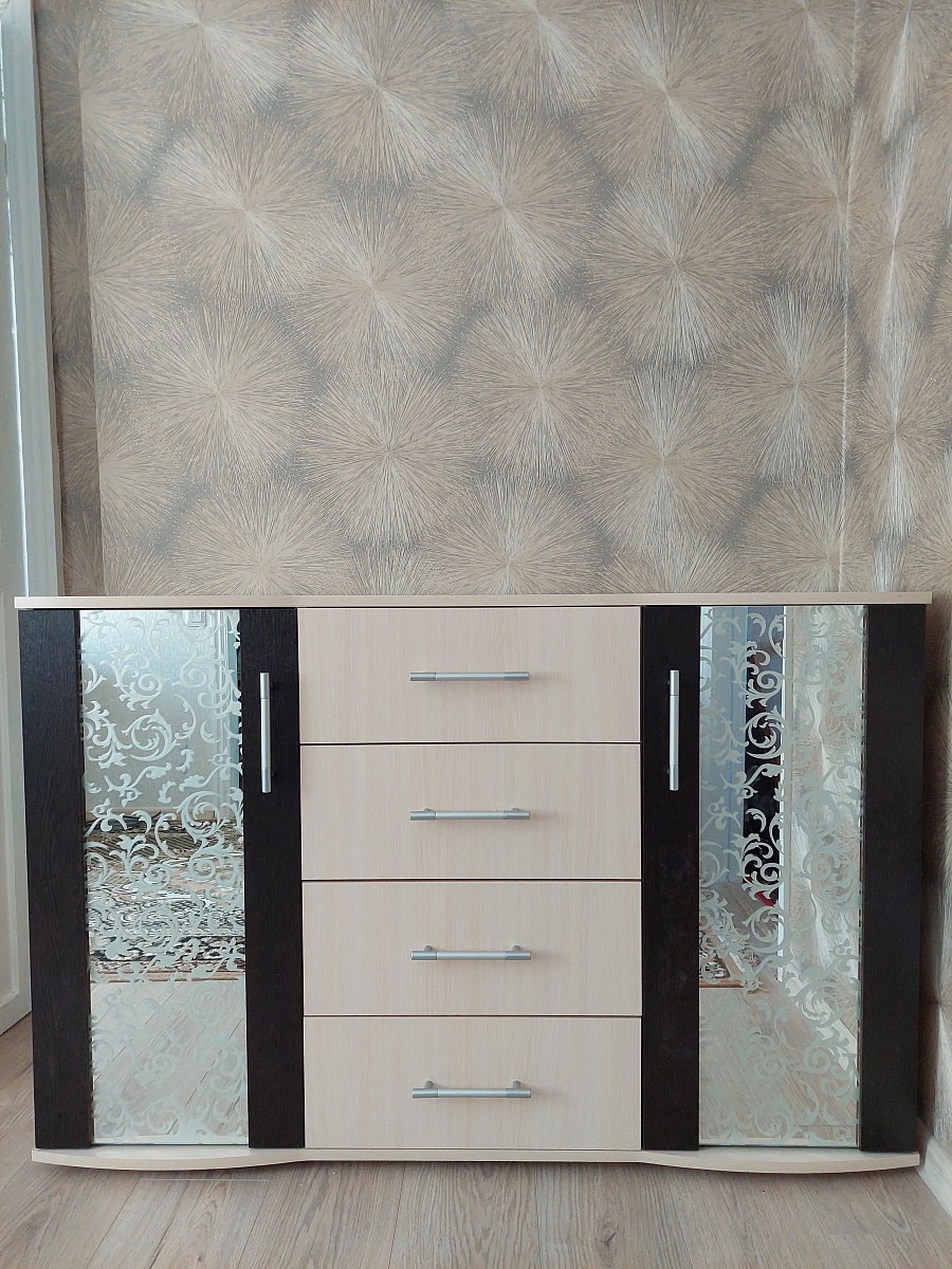 Очень понравился комод. Заказала точно такой, как на картинке, только повыше. Комод очень красивый, вписался идеально.Но: доставили с большим опозданием. Поэтому лучше сразу сказать, что срок изготовления 2 недели, зачем обещать 2 дня? Это же нереально! В наборе фурнитуры не хватало одного эксцентрика и на дверке была небольшая царапина. Если бы я  собирала сама, это стало бы проблемой: искать где купить эксцентрик и чем закрасить царапину. Но профессиональный сборщик мебели всё поправил.Поскольку комод очень нравится, ставлю все пятерки. А за богатый выбор мебели и вариантов её -  отдельное спасибо.