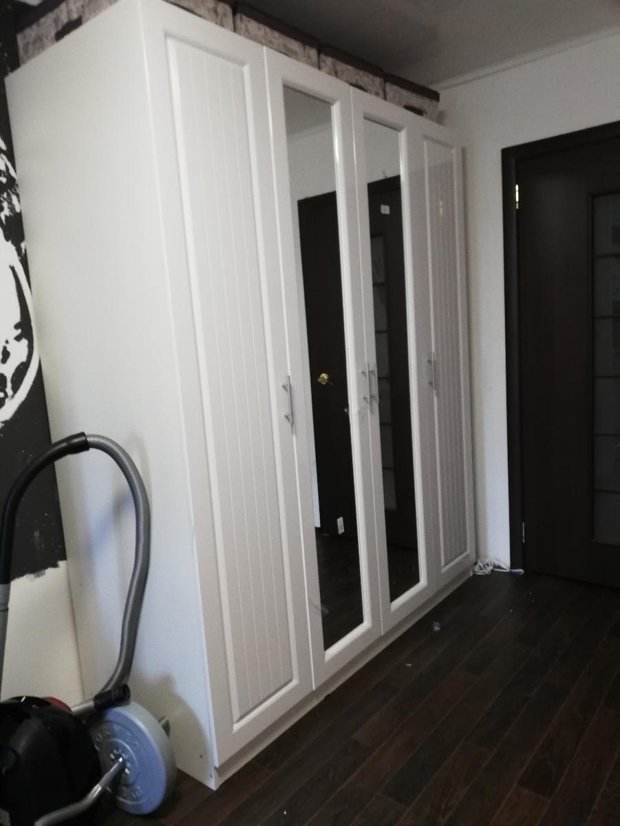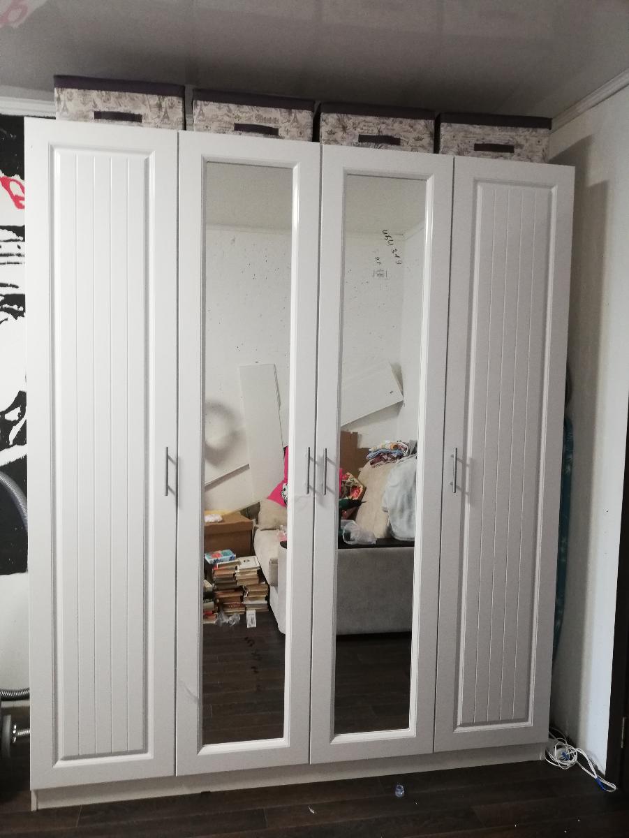 Сделали под мои параметры, довольна всем, согласна с предыдущим отзывом, что зелёное зеркало с обратной стороны шкаф не красит. Очень сложная сборка, собирали сами, запутались с петлями, они оказались разные для разных дверей, в описании  это не было указано. Брали петли с доводчиком, не нарадуюсь. Брали дополнительно штангу в два ряда, нижняя оказалась не удобна, слишком маленькое расстояние, сняла, не пользуемся. Двери были затянуты в плёнку. Трудно оттирать наклейки с деталей. А в целом шкаф красивый, стоит 2 месяца, никаких претензий.