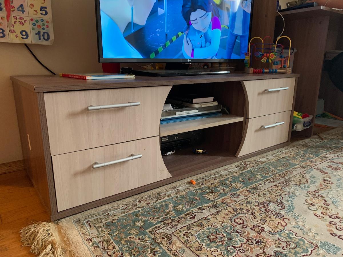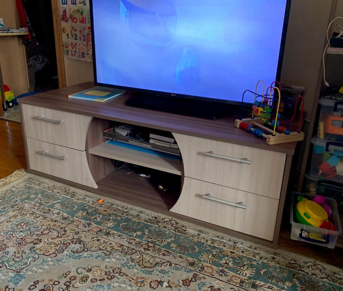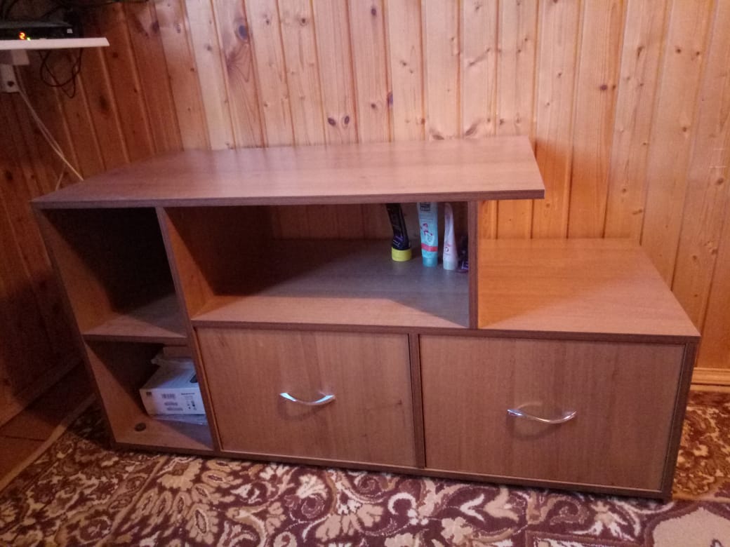 Заказывали такую тумбу на дачу (заказ №394514). Нужно было что-то вроде гибрида комода и журнального стола, и при этом не загромождать пространство в комнате. Тумба "Винница" показалась очень подходящей для этой цели.  Воспользовавшись опцией изменения параметров, сделали идеальный, на мой взгляд, вариант. Тумба получилась достаточно высокой. Радует большая площадь открытых поверхностей в свободном доступе. Вроде и простой, но оригинальный дизайн.  Она довольно массивная и крепкая. Цвет - орех Гварнери. За такую цену - совсем отлично! Уже полгода служит, все прекрасно!