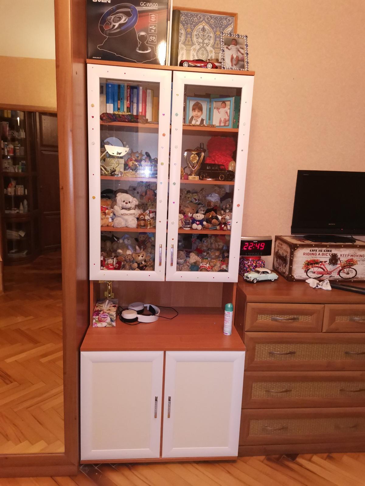 Хотелось бы оставить отзыв, прекрасный сайт, замечательные сотрудники, помогли подобрать цвет дверей, так как я заказывала нестандартной расцветки. Заказ 00000391550 от 16.04.2020, книжный шкаф со стеклом мод. 110 BMS.  Так как мне неудобно было доставка в дневное время, доставили ближе к полуночи, подняли все аккуратно. Собирали сами ( любим это дело), вся фурнитура подошла идеально, собрался четко ровно, и самое главное качественно, плюс попала на скидку в 50 процентов, что конечно же радует душу. Теперь моя коллекция медведей проживает без пыли и красуется под стеклом. Советую этот сайт.