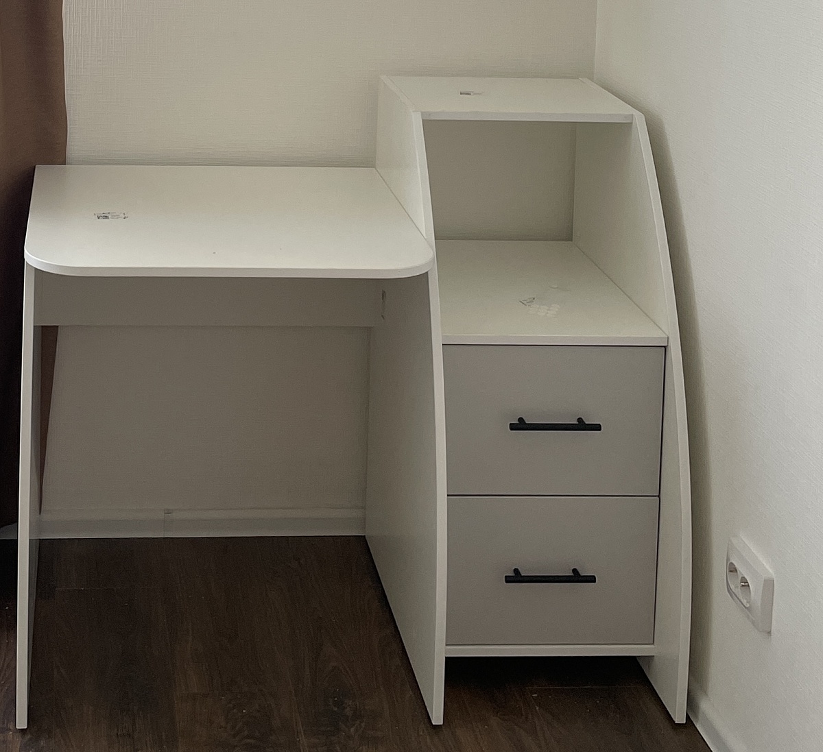 Стол удобный! Вмещает 2 монитора 21 с небольшим совершенно спокойно(размер 1100х1100) . Удобный вырез для залечь под стол и ножки положить(фото 3-4) .Подставка под монитор крайне удобная, нет никаких перемычек, спокойно можно присоединять провода ( фото 2). Кресло можно задвинуть. Тумба на колесах , можно закатить под стол , можно рядом. У меня рядом , еще дополнительное рабочее пространство. Размер можно заказать , у меня небольшая комната, влезло до сантиметра. Сборка легкая , нет сложных и громоздких элементов.